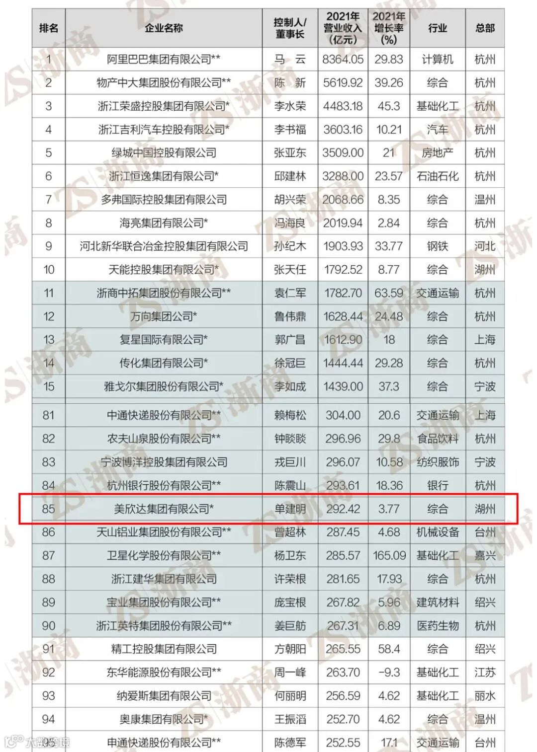 “2022浙商全国500强”全榜单