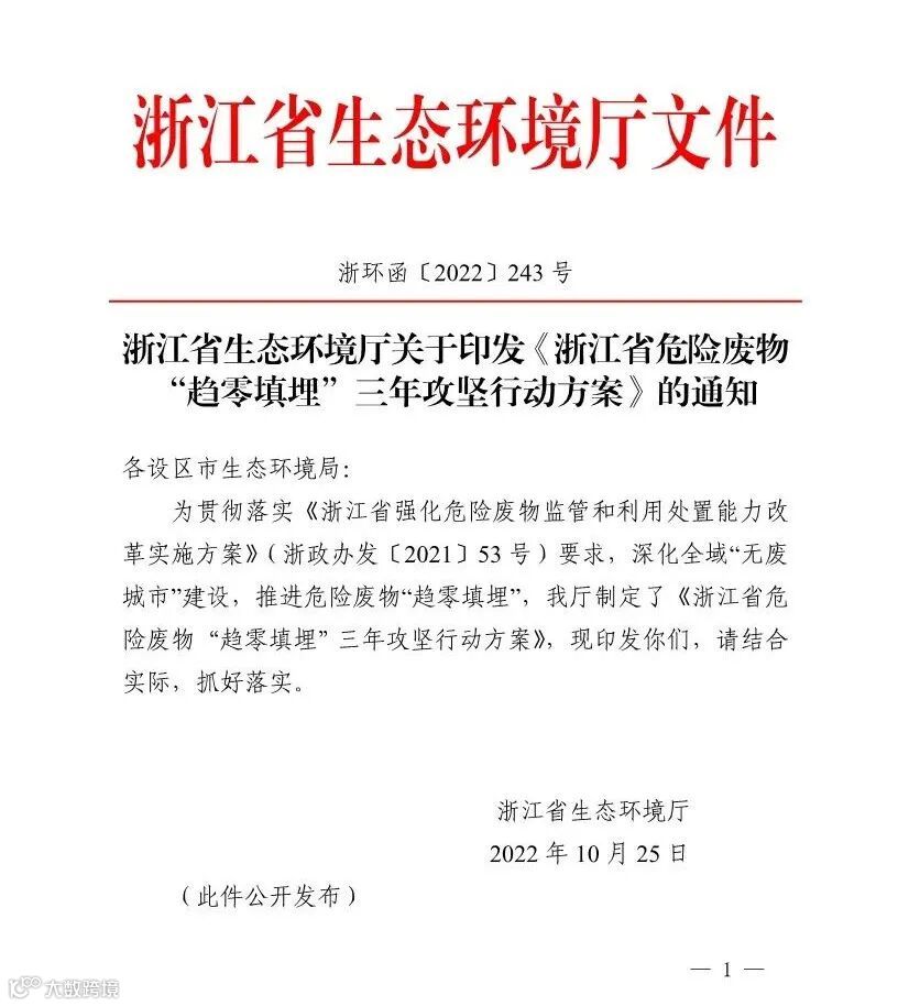 关注丨浙江省启动危险废物“趋零填埋”攻坚
