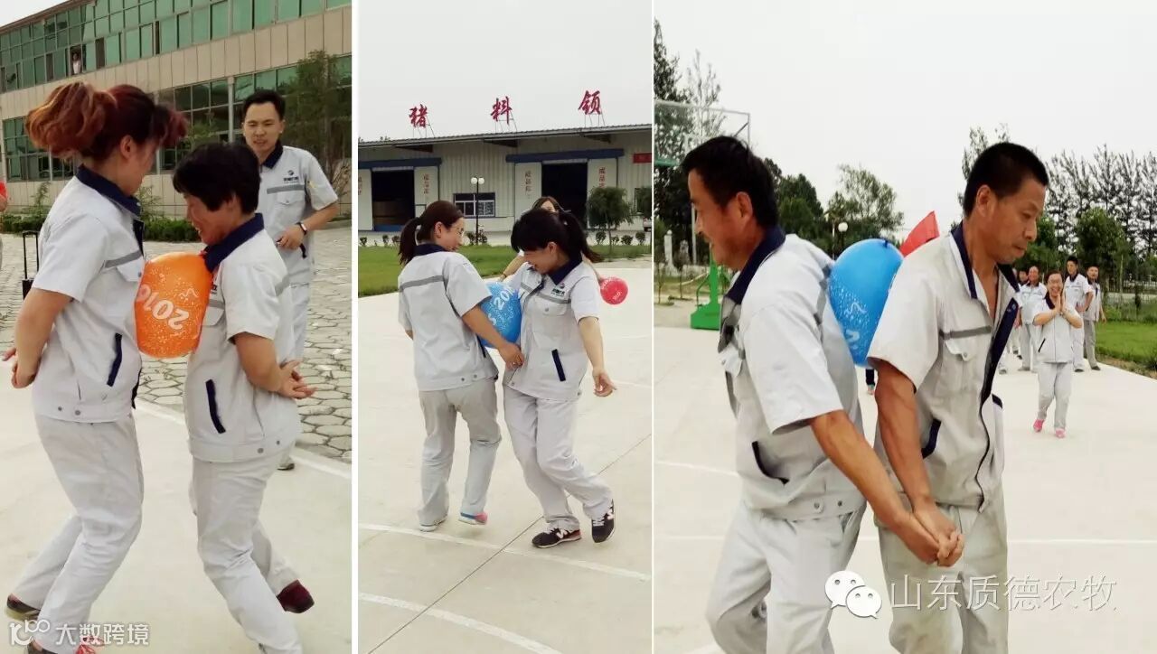 第三个环节是两人夹气球,如何在最短的时间内高质量完成比赛,气球不破还不掉,各队成员都献计献策,比赛开始,赛况并没有想象的那么顺利,各队都状况百出,但各队成员都在拼命的为自己队加油,大家都不放弃、不抛弃,这种精神值得表扬。比赛终究是有输赢,最后一队获胜。