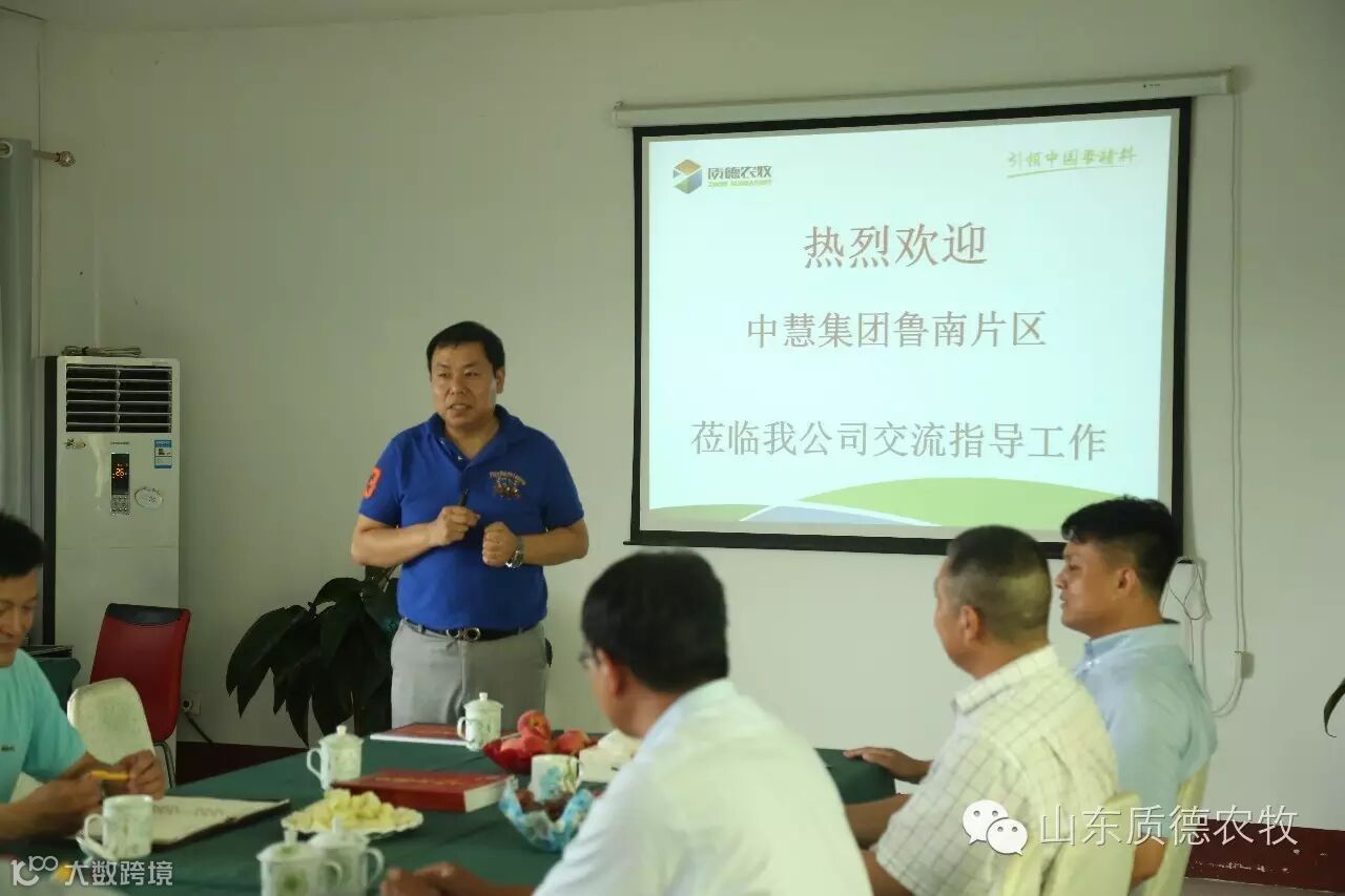 2016年6月21日,由中慧集团鲁南片区总裁许二字带领鲁南片区各公司高管团队一行17人莅临山东质德农牧集团聊城公司交流指导工作。质德农牧集团董事长翟长信先生、副总裁孙建荣先生、管理中心总监朱全生先生对其各位的到来表示热烈的欢迎。