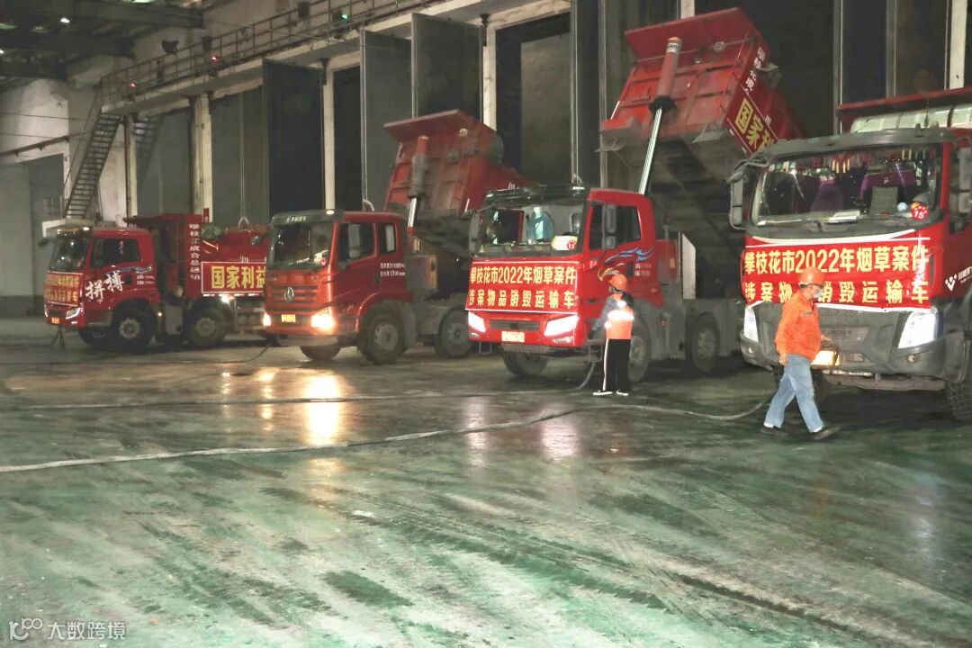 3月15日下午14点,攀枝花市市场监督管理局和四川省烟草公司攀枝花市公司联合执法,将收缴的劣质烟叶120吨、假烟27000条,劣质大米6吨,共计价值620余万,分32车由执法人员押运到攀枝花旺能环保能源有限公司集中焚烧销毁变废为宝,直接发电82000度。