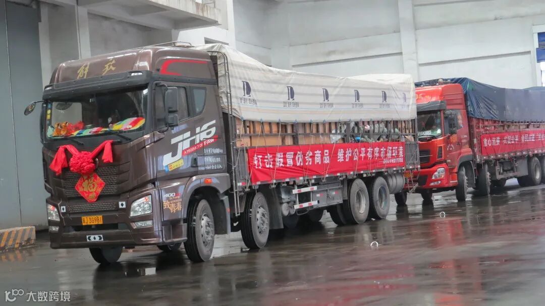 在兰溪市市场监督管理局工作人员的监督下,装有过期和不合格的口罩、劣质毛巾、饼干糕点、假冒品牌物品、初榨橄榄油、冰冻食品、劣质洗洁精等各类假冒伪劣商品的卡车抵达兰溪旺能环保能源有限公司。