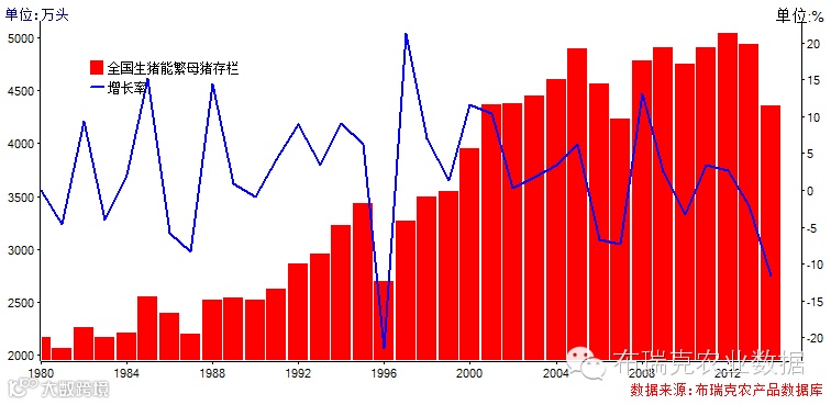 2011年4季度后我国猪价进入了大周期下跌,期间虽出现阶段性上涨,但过长的周期性下跌,最大下跌幅度超过50%,猪价最低下滑至5元/斤,局部地区甚至跌至4.8元/斤。过长的时间生猪养殖亏损,2011年投产养殖户纷纷退出。另外我国仍有大量的50-60后散户,年龄加上养殖亏损因素影响,退出情况明显。严厉的养殖环保政策,环保要求不达标或者资金压力过大以及年龄偏大的养殖户不断退出养殖市场,减少我国生猪及母猪存栏数量,特别是2014年及2015年。散户的加快退出有利于国内外规模养殖的进程加快,规模集中度的提升提高了国内能繁母猪生产水平,农业部发布最新数据显示2015年能繁母猪生产力提升6.5%。预计在未来一段时间,随着规模程度的不断提升以及从业人员素质的提升,能繁母猪生产力进一步提升,从而降低了国内对于能繁母猪的数量的要求。