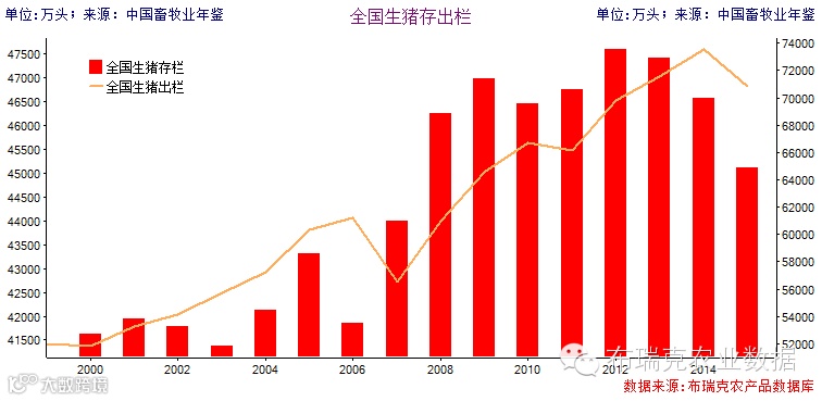 1中国生猪存栏及出栏情况
