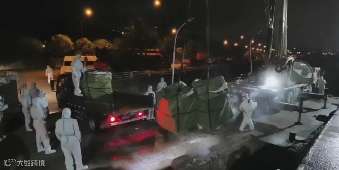 经过7个多小时的装载,走私烟被集中运往舟山旺能环保能源有限公司进行销毁。