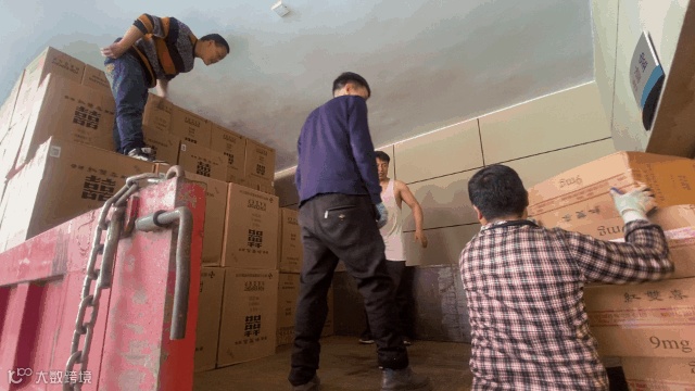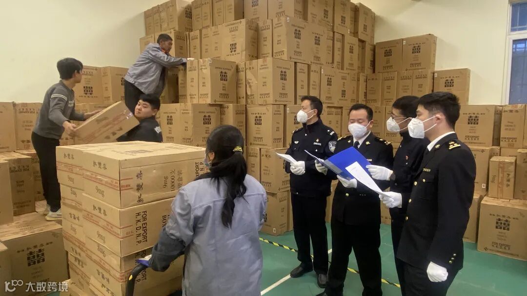 凌晨2点,工人们在海关、公安及烟草部门工作人员的监督下,将走私卷烟装运至11辆运输车内。