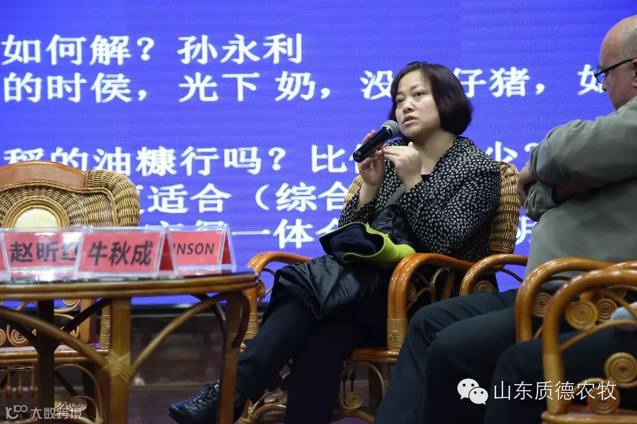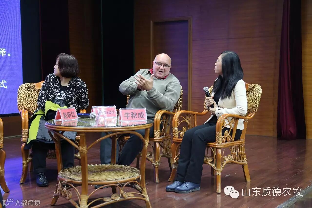 在老师讲课期间猪场老板通过微信不断与工作人员互动提出自己的问题,后面的互动将大会推向高潮,赵昕红博士、Johnson博士、朱辉、牛秋成四位专家老师在台上就坐,针对大家在生产实践中所遇到的各种问题一一解答,出谋划策。互动交流中大家各抒己见,热闹非凡,让猪场老板面对面与专家交流,养殖户听后茅塞顿开,对质德能提供这样的交流论坛内心非常感激!
