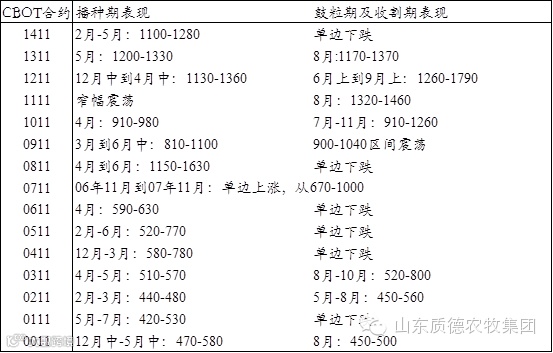 再次,在大豆播种、生长期,大豆价格易涨难跌。我们统计了自2000年以来的美国新作11月合约在播种期和关键生长期的表现,我们发现所有的年份11月大豆合约均存在至少10%左右的涨幅。