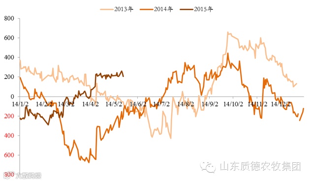 首先,我们认为CBOT大豆下跌空间有限,加之目前进口大豆升贴水较为坚挺,因此进口成本将大体保持稳定,在此前提下,国内期、现货价格进一步下跌将会导致油厂的压榨利润被侵蚀,压榨利润恶化会导致价格跌速放缓。