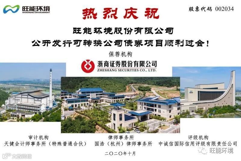 本次发行可转债是公司重大资产重组后的第一次公开融资,标志着旺能环境通过资本市场公开融资取得重大阶段性成果。让垃圾变成绿色资源,让旺能成为城市名片,助力旺能环境构筑“无废之路”愈行愈宽。
