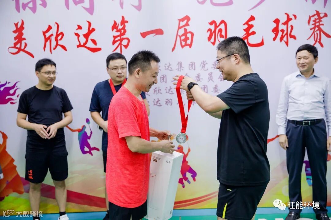 美欣达集团总裁芮勇,集团副总裁、羽毛球社社长方明康,集团副总裁、工会主席金敏,集团党委书记莫新生出席并为参赛选手颁奖。