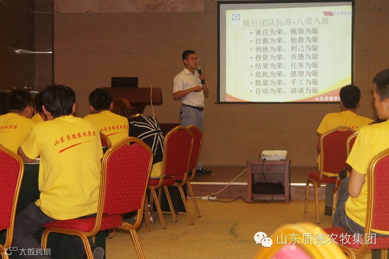 2014质德商学院新人培训进入第二日。培训讲师有质德农牧集团副总裁孙建龙先生、聊城公司总经理朱全生先生、副总经理谢遵端先生、临沂质德饲料有限公司总经理韩书礼先生。