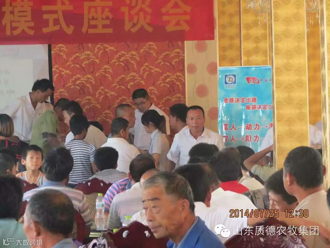 2014年7月25日质德农牧平原分公司商河市场推广会在商河县前埔乡圆满召开。此次会议是由营销公司总经理李高东与质德农牧合作伙伴王华忠先生精心策划的,参会人员达130人,会议现场订货230多吨,预收100多吨货款。会议邀请了平原公司总经理于光春先生、营销公司总经理孙新为先生和姜洪明先生以及数名优秀营销经理。