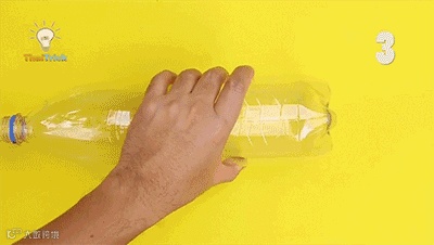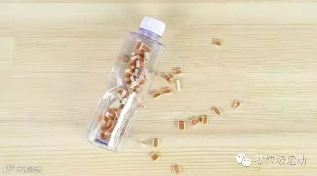 步骤:在瓶子上切一个小洞,倒入少量宠物零食,宠物玩瓶子的时候零食就会掉出来咯!
