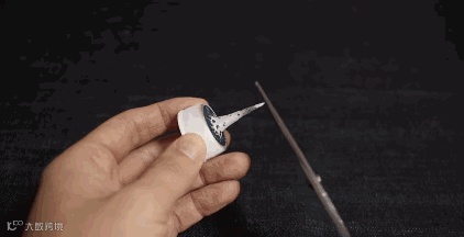 2:用牙签从瓶盖里面往上戳,软化后的塑料很容易变形,用剪刀把尖嘴处剪掉留个孔