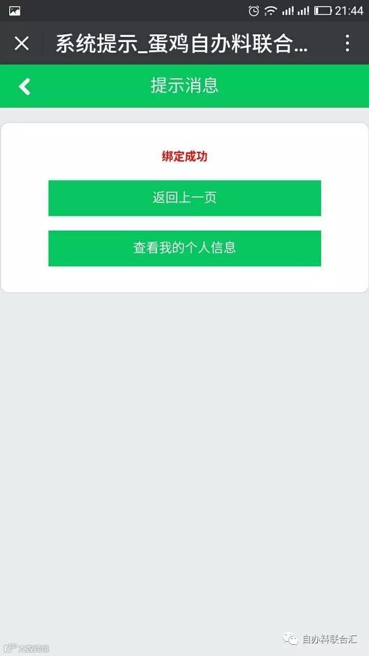 自办料联合汇公众号内回复字母“b d” 就是绑定的意思,可以绑定公众号。