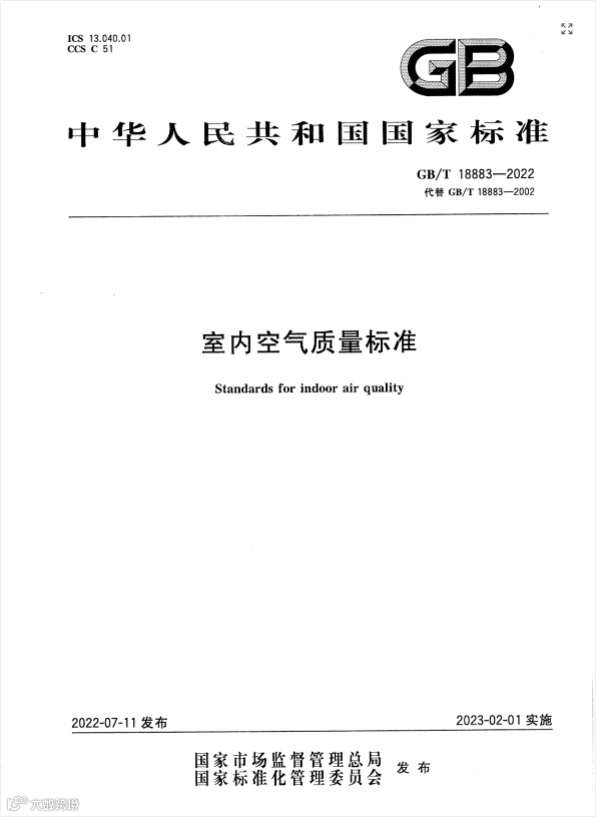 我国新版《室内空气质量标准》(GB/T 18883-2022)于2022年7月11日经国家市场监督管理总局(国家标准化管理委员会)批准发布,代替GB/T 18883-2002《室内空气质量标准》,自2023年2月1日起实施。甲醛HCHO限值从0.1mg/m³缩紧至0.08mg/m³
