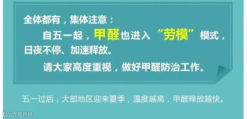 甲醛的挥发点是-19度,室温每增加一度,挥发量会增加20%。五一过后室内温度普遍超过20度,温度越高,甲醛释放越快!