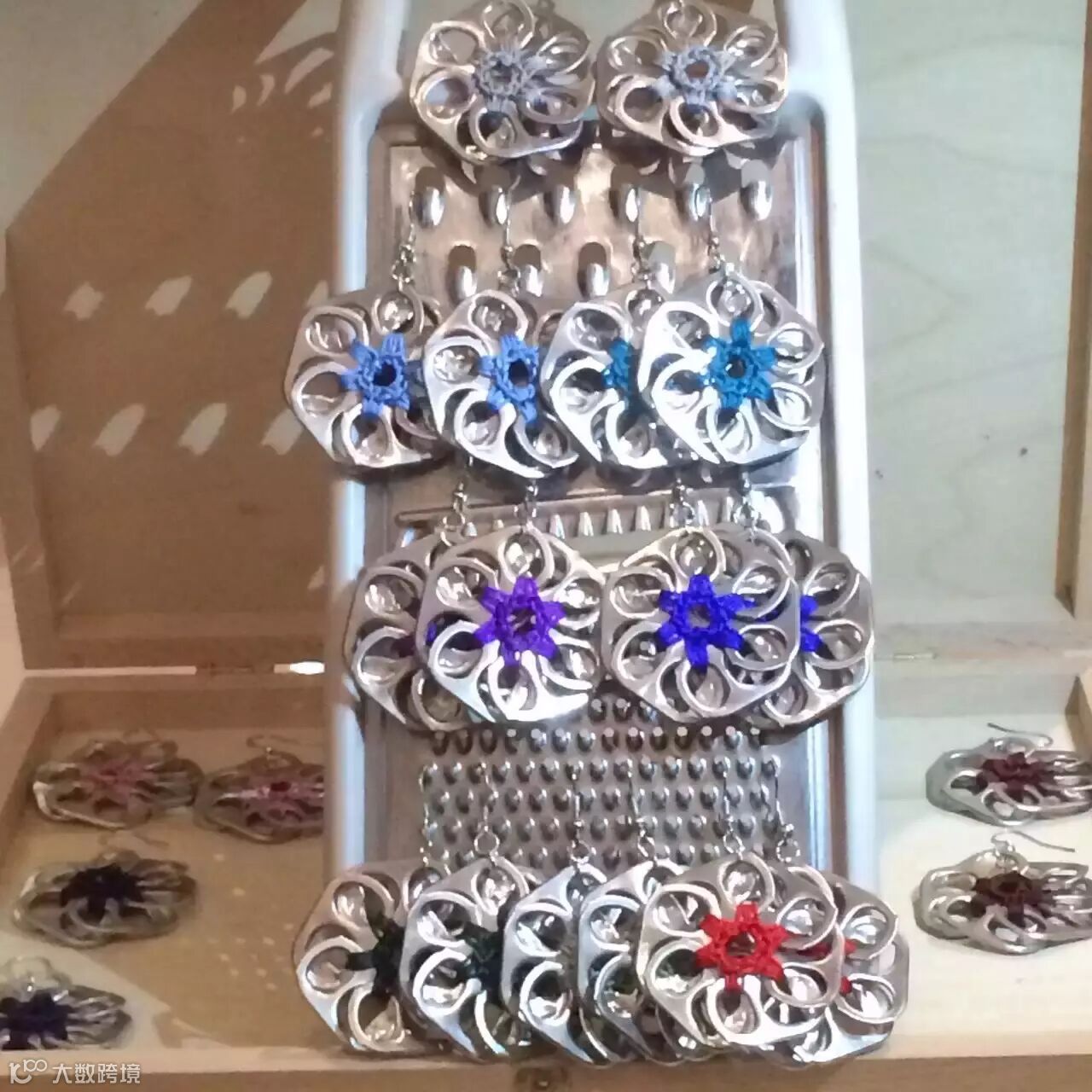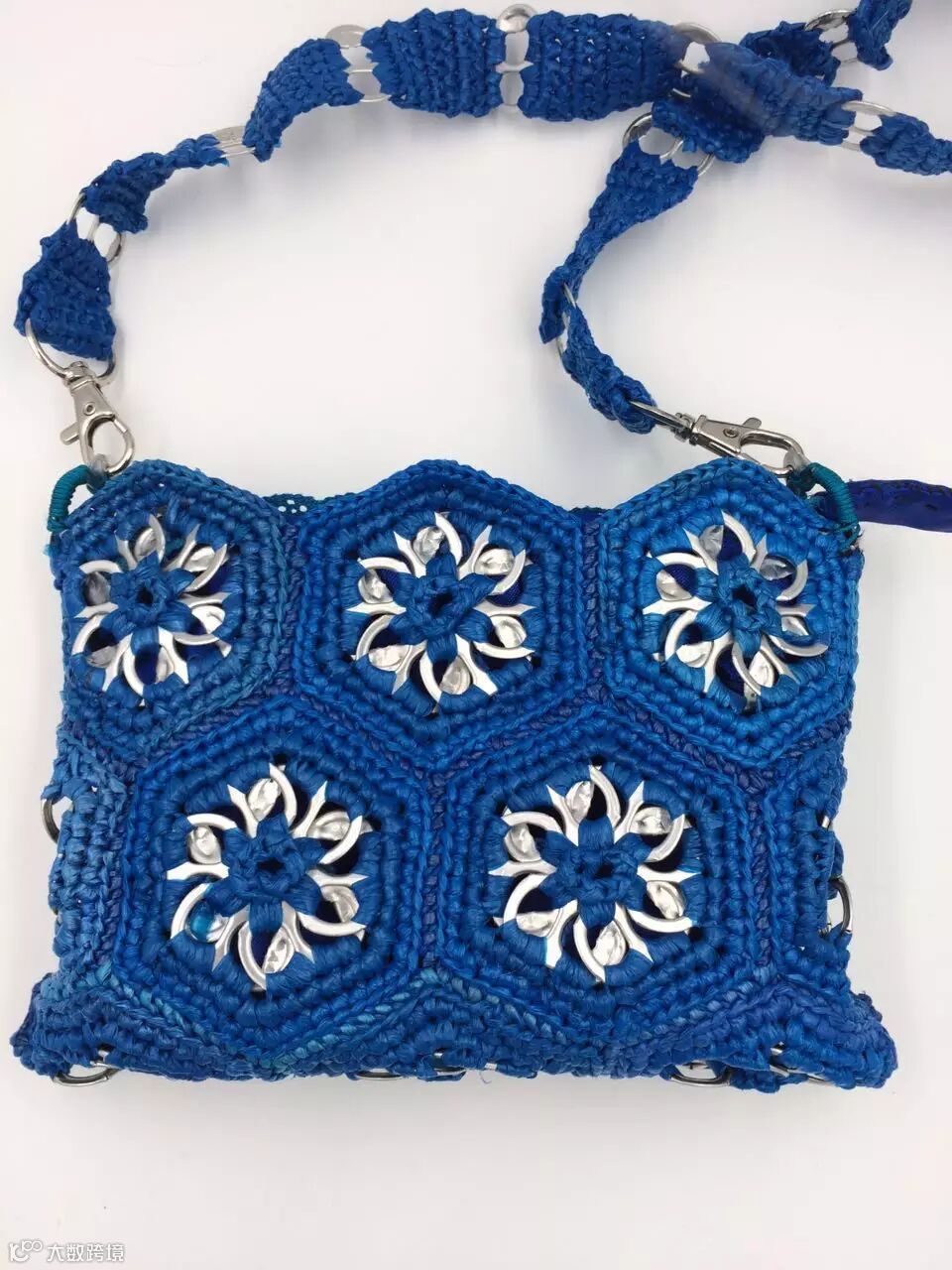 ►这些不是普通的手工制品哦,因为这些包包的材料,来自废弃的易拉罐拉环和塑料袋。精致得完全看不出来有么有!