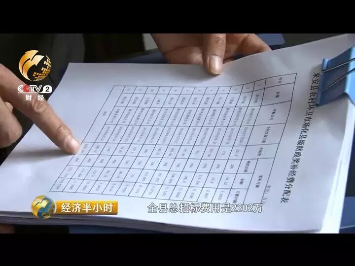 郭永付:全县总招标费用是2202万,这就是我们全县农村,40万农村人口保洁,3000个自然村庄保洁的总费用。