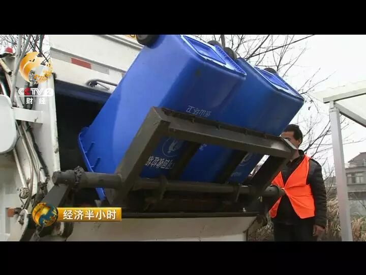 郭永付:桶装车载挂桶以后,垃圾不见天不落地,挂桶以后,3至5秒钟好了。