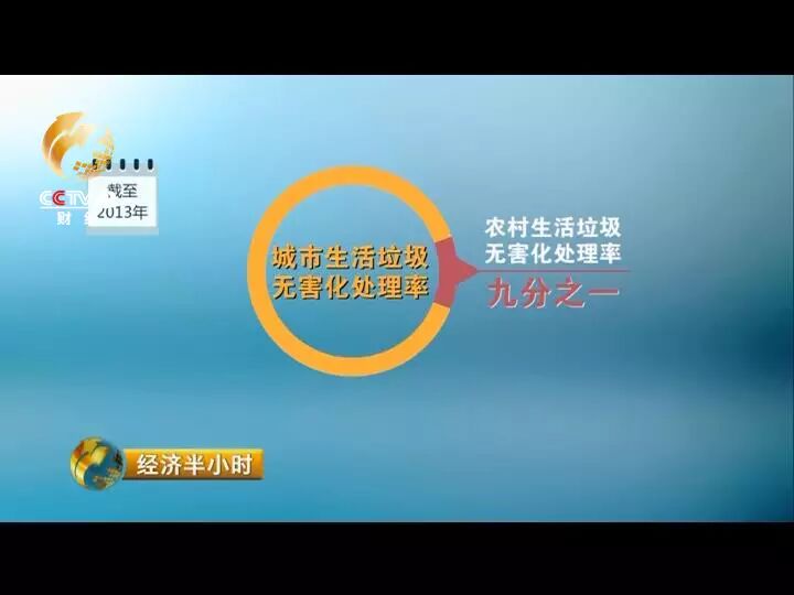 截至2013年,全国农村生活垃圾的无害化处理率仅为同期城市生活垃圾无害化处理率的九分之一。