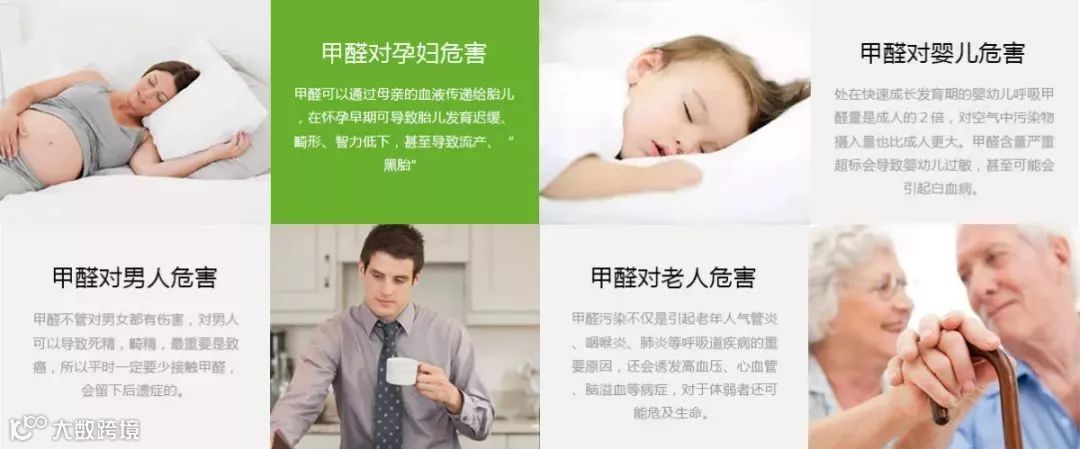 世界卫生组织早在2004年就确定甲醛为一类致癌物。中国现在有超过80%的新装房甲醛超标,其中对老年人、儿童、孕妇、孕龄夫妻的影响最大。尤其对老年人而言,甲醛容易诱发其生理系统的各类疾病。