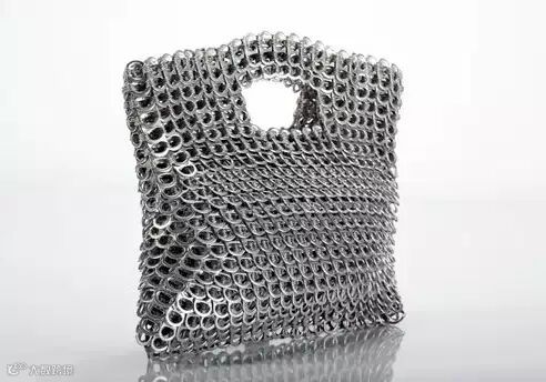 完全用易拉罐拉环制成的包带有冰冷的金属感,现代气息浓厚。