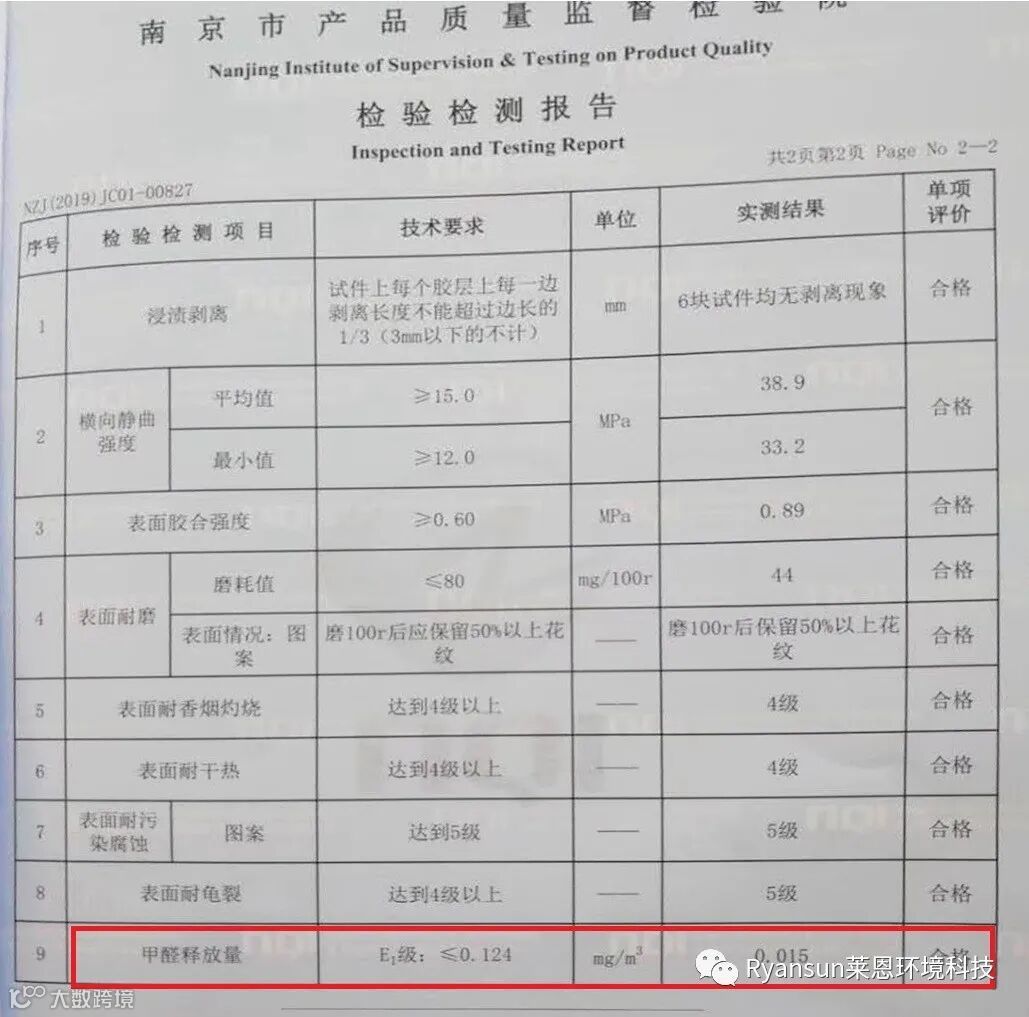 合作客户无醛级板材检测报告