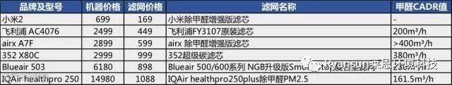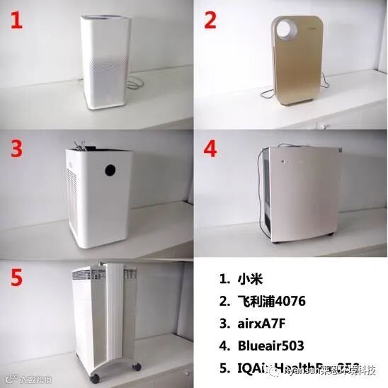 最后是空气净化器或者叫除醛机一组,分别为小米2、飞利浦4076、airxA7F、Blueair503和IQAir HealthPro250。