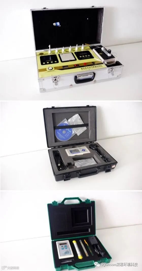 实验对象全部展示完毕,开始展示我们强大的测试仪,一共三台,分别为室内空气污染六合一测试仪,PPM-HTV甲醛检测仪和格雷沃夫FM801甲醛检测仪。 目前民用甲醛检测仪受检测原理影响,结果并不是十分准确,并且容易受到干扰,尽管我们选用了相对靠谱一些的仪器,但也存在10%左右的误差。最大的那个看起来最唬人,其实才1000多元,后面两个小的看起来其貌不扬,其实价格是最大的那个10倍之多!