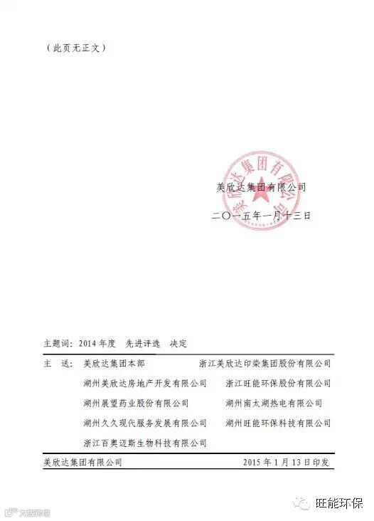 旺能环境2014年浙江旺能环保股份有限公司在美欣达集团领导的关怀指导下,各项目公司紧密协同配合,每位员工均以主人翁的心态积极投入发展、运营工作。