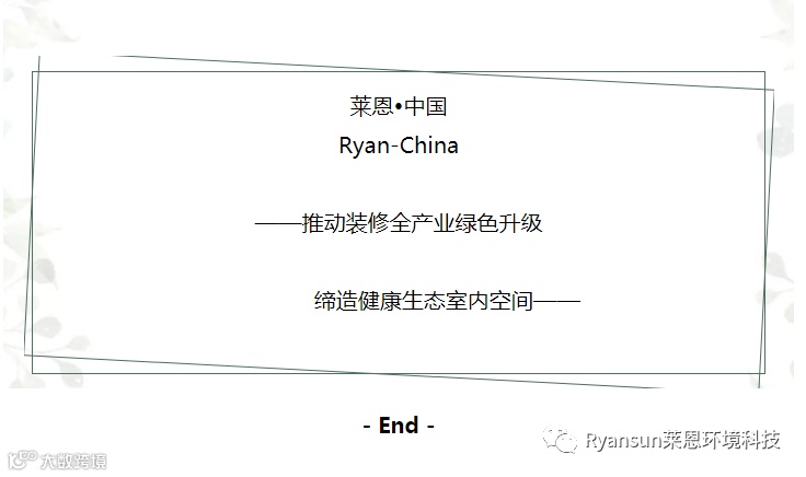 友情提醒:杜绝装修污染的最佳方式是在装修过程中植入德国莱恩Ryansun无毒装修质控工艺,可以针对不同污染源建材源头无死角净化处理,确保装修完即可入住,无毒无味。如果未使用无毒装修质控技术,装修完一定要联系第三方检测机构进行甲醛检测,超标的话一定要联系专业靠谱的环保公司进行科学除醛,治理完复检合格后再进行入住。
