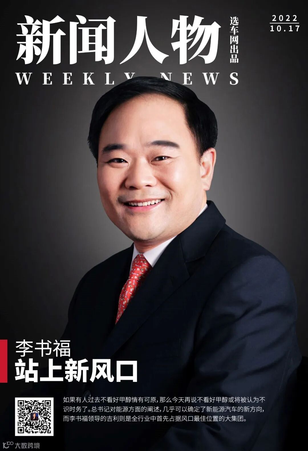 驱动产业发展有两个轮子,一个是法规,一个是市场。甲醇已经得到了市场的认可,一旦得到政策的加持,甲醇事业将很快在新能源的高速路上飞驰起来。目前看,李书福是最具前瞻性战略眼光的、最早备战这条新赛道的企业家之一,而且拥有全套技术,真可谓万事俱备,东风一会儿就到……在甲醇即将成为新能源赛道上的新风口的时候,我们选择风口上的第一人——李书福为本期一周新闻人物。