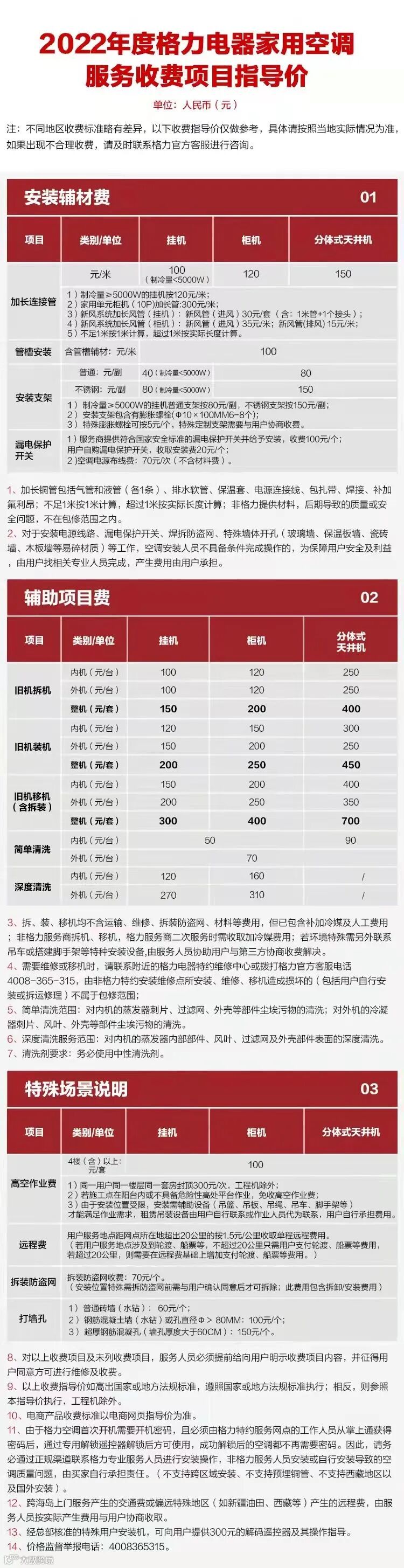 *注:以上仅供参考,最终以《2022年度格力家用空调服务收费项目指导价》为准。