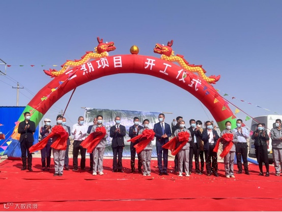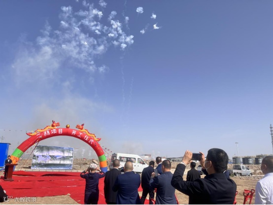 玉门祥天新能源产业发展有限公司董事长林海滨宣布二期项目工程开工,顿时礼炮齐鸣,奠基仪式在大家的期待与欢呼中圆满结束。