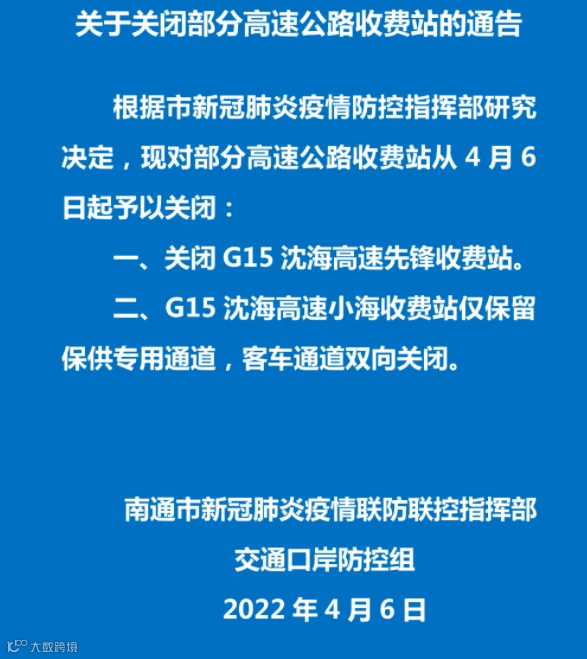 4、S28 启扬高速,关闭如皋东、马塘、海门港双向出口;关闭合作、南阳双向出入口。