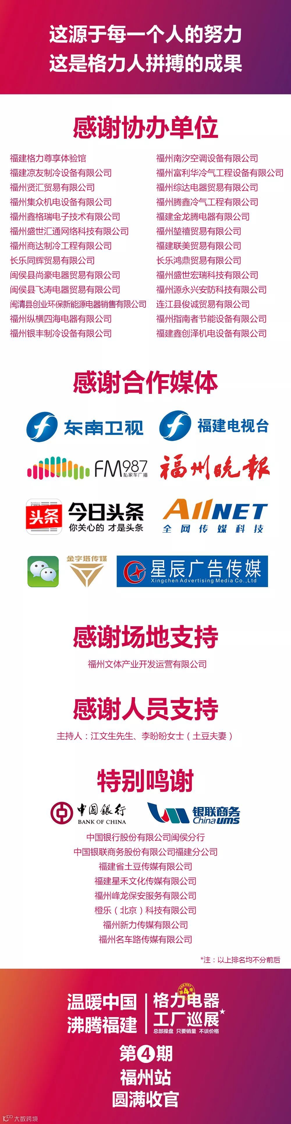 格力智造实力标杆,本次活动先后在泉州、南平、漳州、建阳、宁德、三明、福州,七地相继取得傲人成绩,现场消费者热情如潮,吸粉无数。
