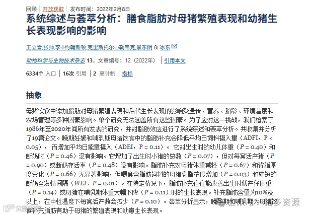 一项meta-analysis显示,中期高脂饮食补充可改善繁殖性能,但对肥胖母猪,脂肪补充>6%会导致脂代谢紊乱,仔猪出生变异增加10%。