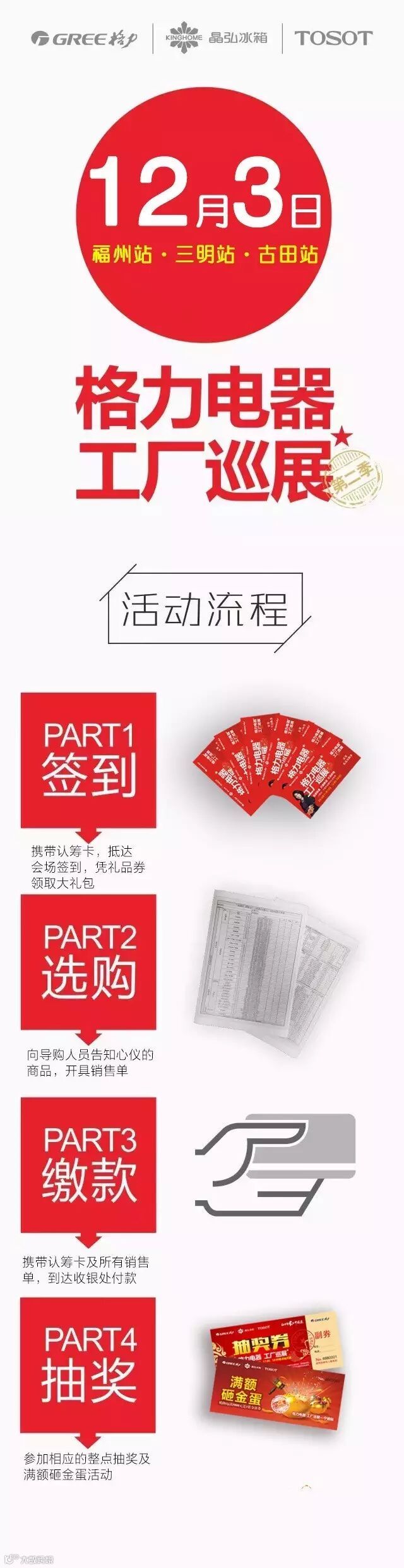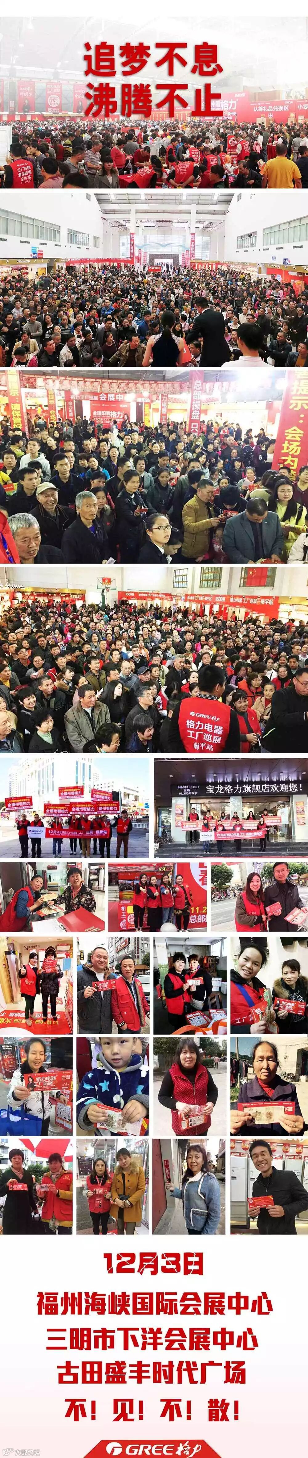12月3日 格力电器 工厂巡展 福州站·三明站·古田站 只要销量 不谈价格 全线裸价 12月3日 12:00三地准时开抢!
