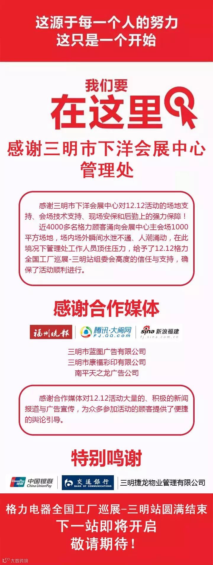 我们要向今天受邀参加【格力电器全国工厂巡展-三明站】的嘉宾致谢