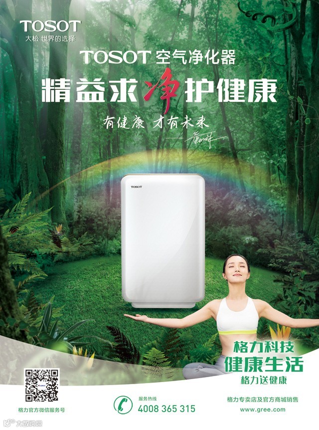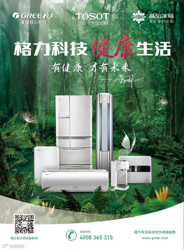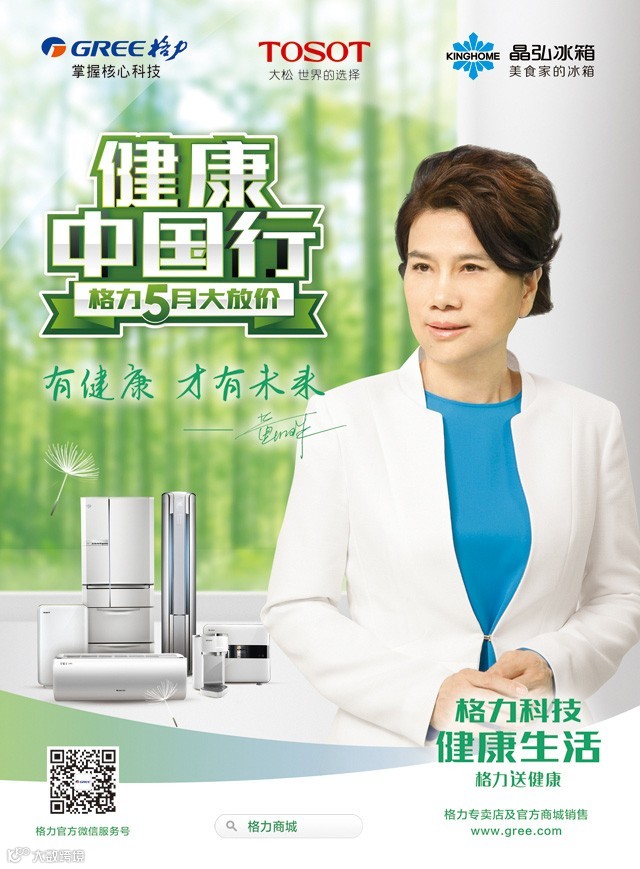 “2015年5月格力推出健康中国行,生命的品质在于健康,有健康才有未来。科技改变生活,格力以其对绿色产品的不懈追求,为大众营造了健康的生活方式。格力一直走在为消费者提供健康未来的路上。”
