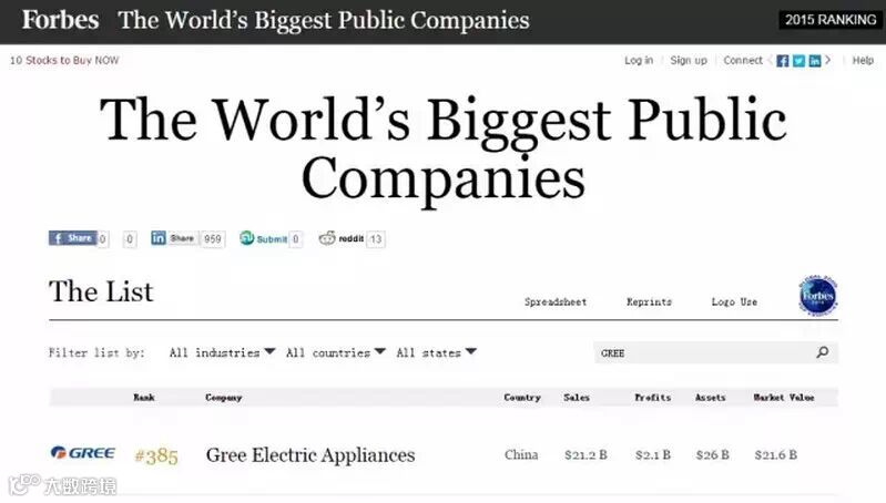 Gree排名福布斯全球500强第385位
