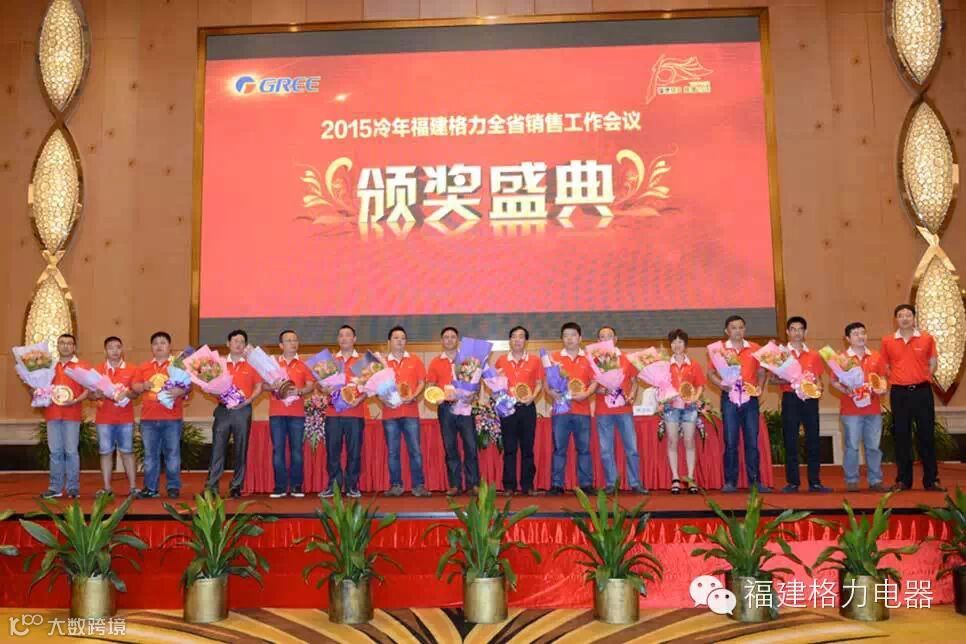 随后,福建格力对在2014冷年各项工作中所涌现出的优秀经销商进行了表彰,共分《年度销售先锋》、《年度优秀专卖店》 、《卓越进步奖》、《年度优秀经销商》、《年度十强销售团队》,颁发了纪念奖盘、奖杯及奖品、奖金,以勉励经销商在新的一年中更加奋进努力,共创新年度的辉煌。