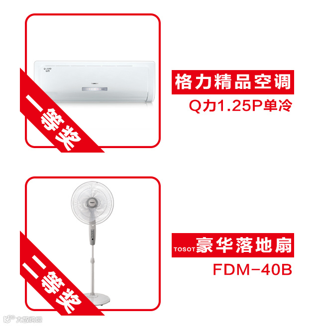二等奖:TOSOT豪华落地扇一台 (5名)