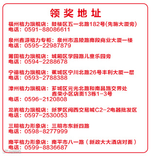 领奖细则:获奖者请根据微信提示填写资料,并在规定时间内到指定格力专卖店凭微信提示消息兑奖,如有疑问请联系福建格力电器微信公众平台,我们会尽快回复。