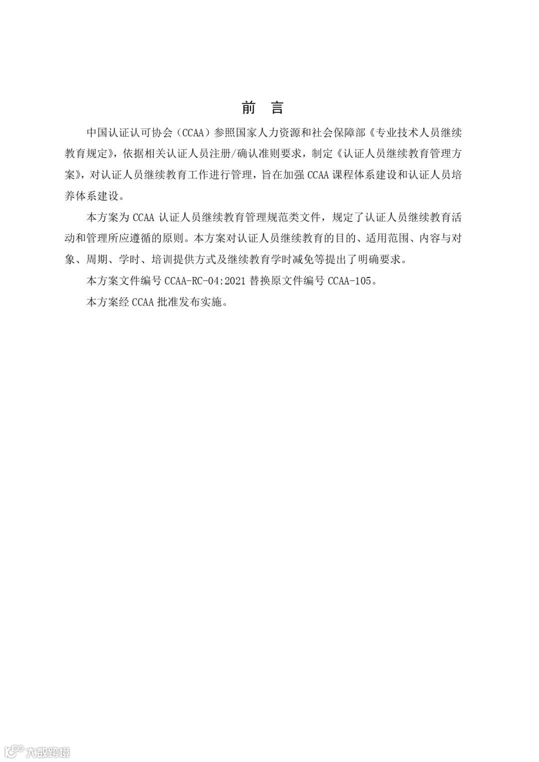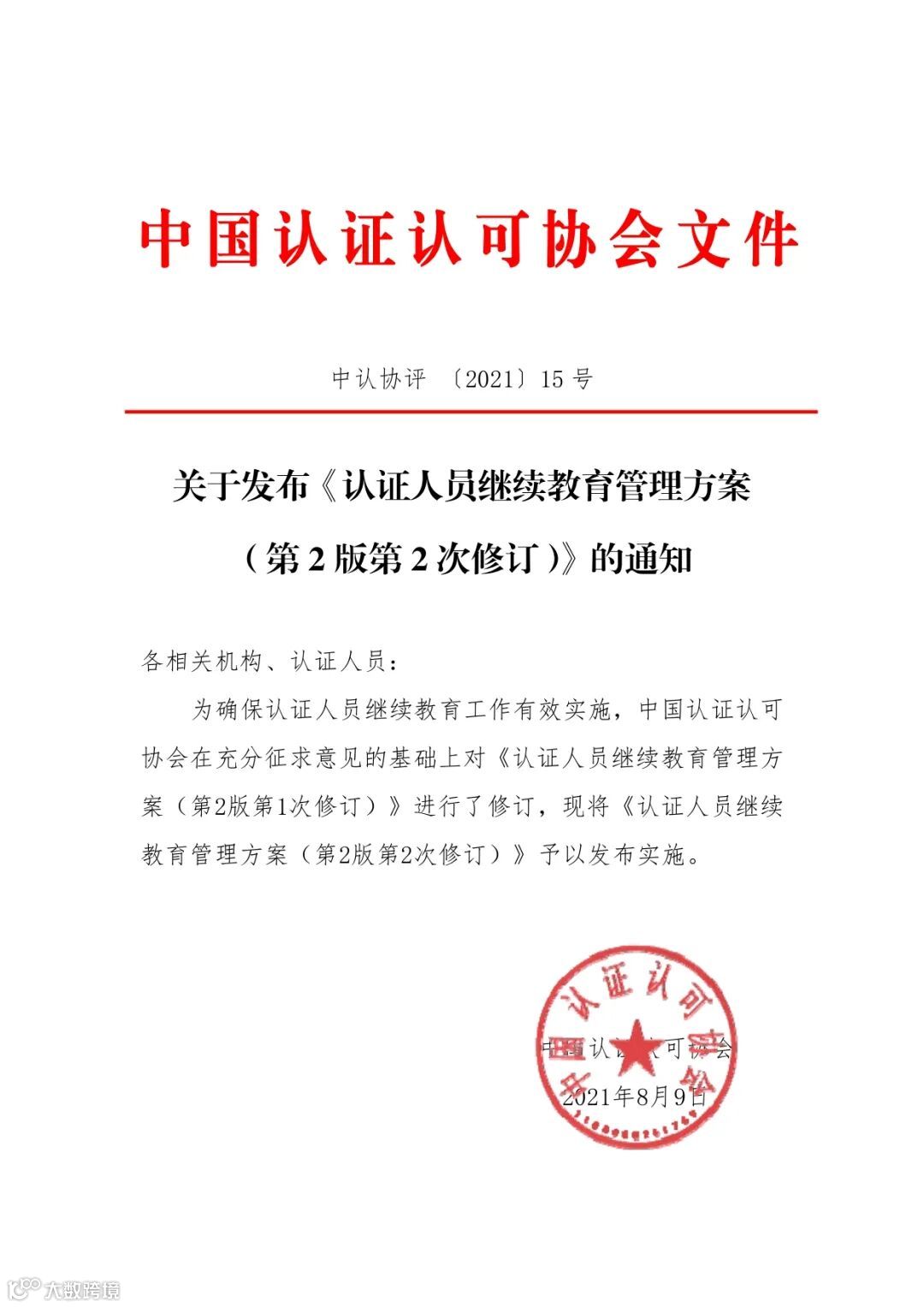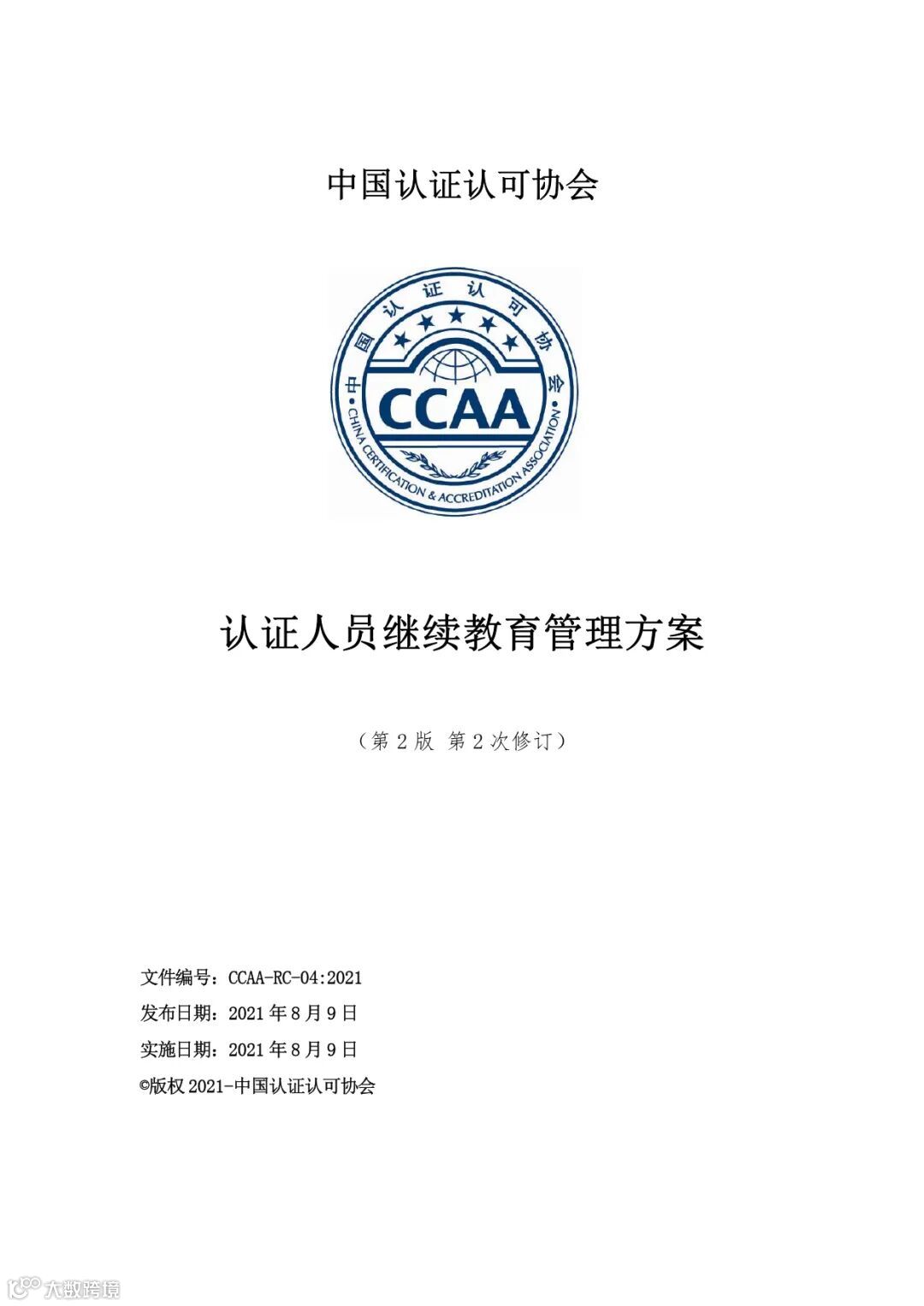 为确保认证人员继续教育工作有效实施, 中国认证认可协会发布并实施《认证人员继续教育管理方案(第2版第2次修订)》。