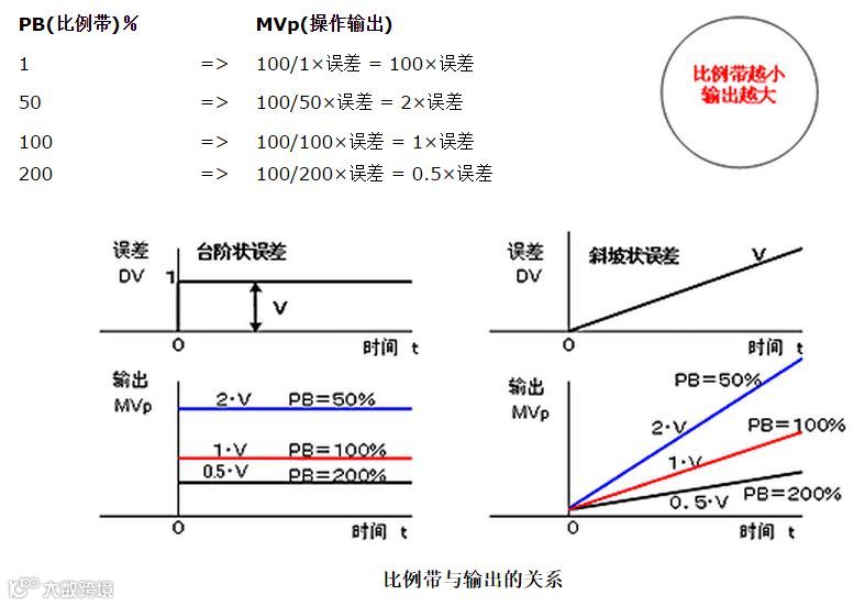 比例带与比例控制(P)输出的关系如图所示。用MVp运算式的设定举例