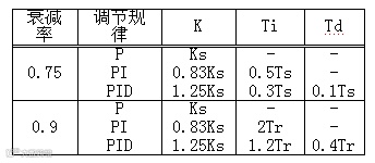 (3)利用Ks和Ts值,按下表给出的经验公式,计算出控制器的参数整定值。