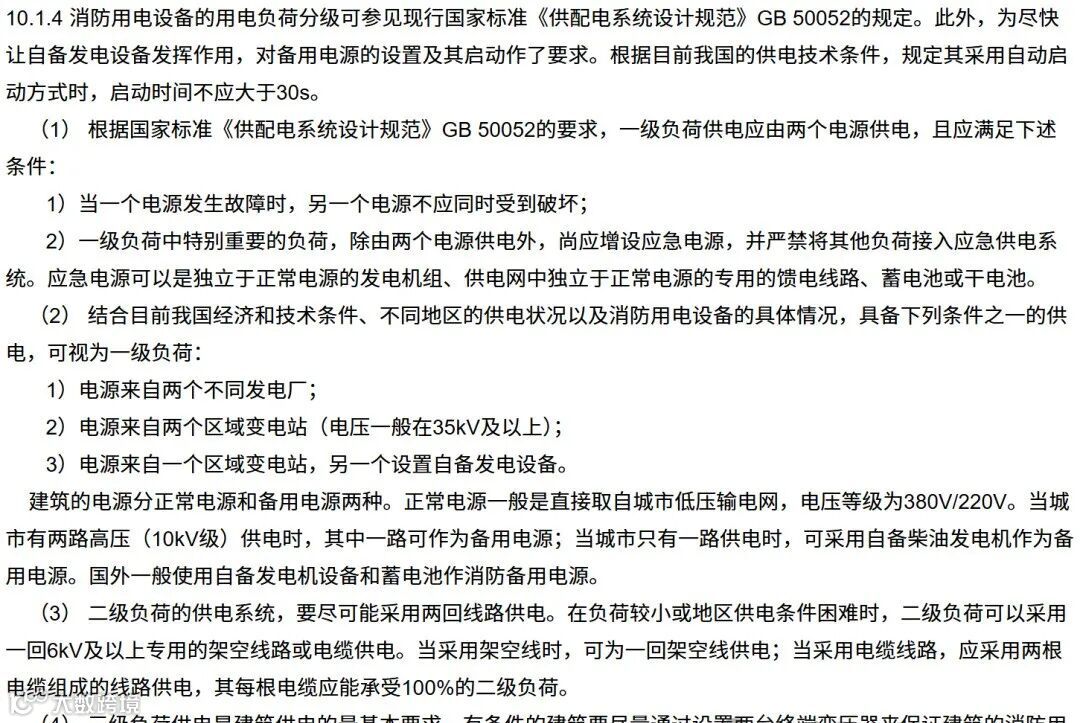10.1.2 下列建筑物、储罐(区)和堆场的消防用电应按二级负荷供电: